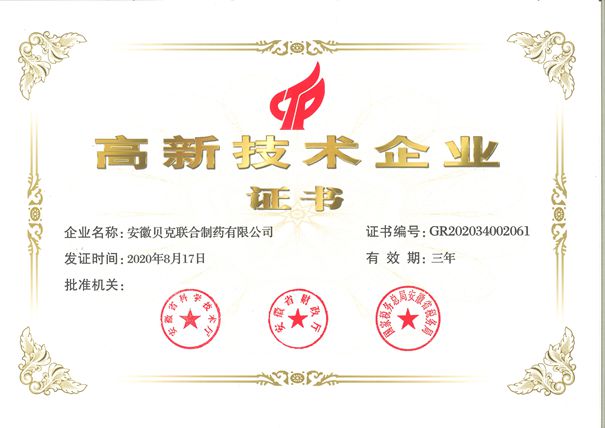 安徽省高新技術(shù)企業(yè)(聯(lián)合制藥)