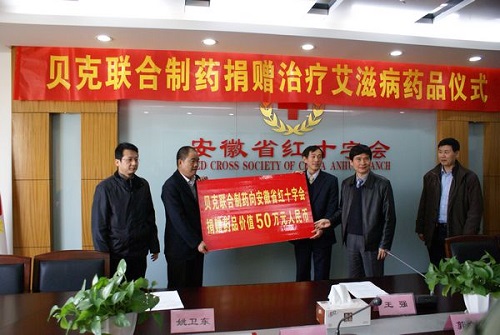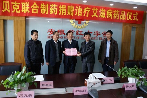 貝克聯(lián)合制藥向安徽省紅十字會捐贈治療艾滋病藥品