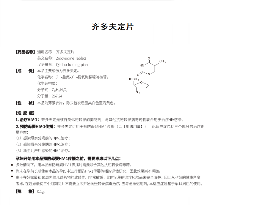 齊多夫定片(100mg)